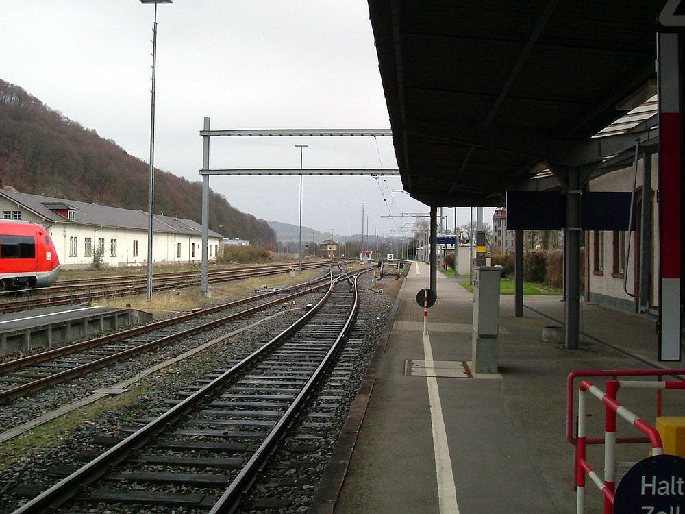 Blick auf den elektrifizierten "Koblenzer Bahnsteig" in Waldshut am 25.03.2007.