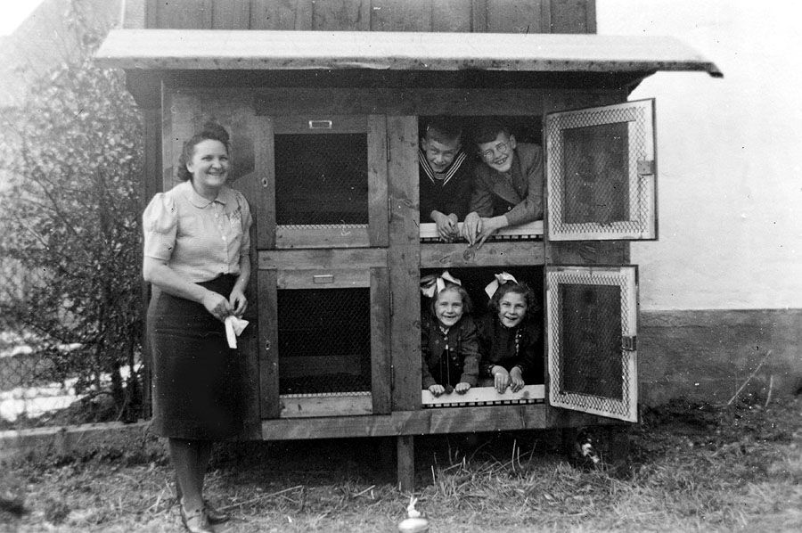 Zu Ostern 1941 posiert man auch schon einmal im Hasenstall.