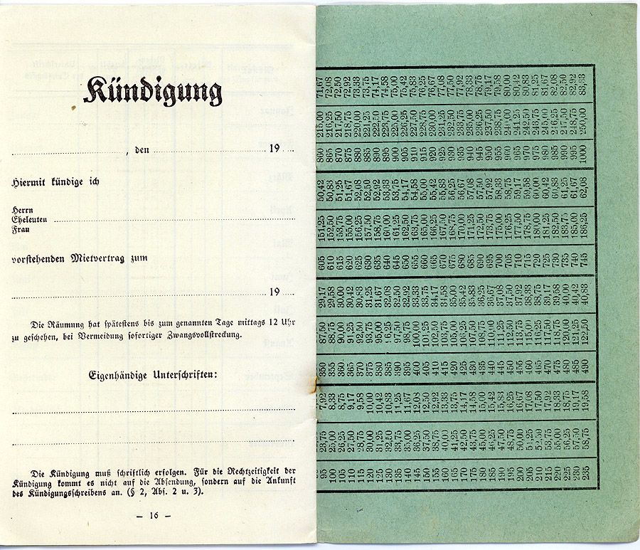 Und so sah der Einheitsmietvertrag des Jahress 1939 aus.