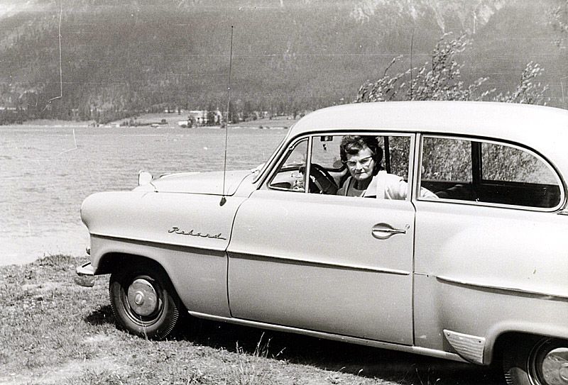 Warum schaut denn die Tante Thekla so finster aus dem Opel Olympia Rekord
