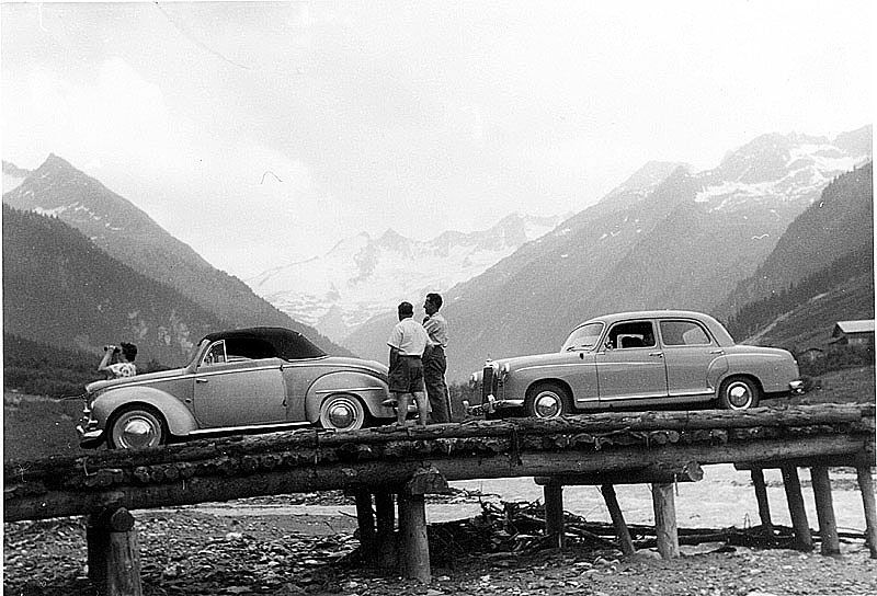 Die Aufnahme von einem Ford Taunus "Buckeltaunus und einem Mercedes Ponton entstand im Wild-Gerolstal im Juli 1959.