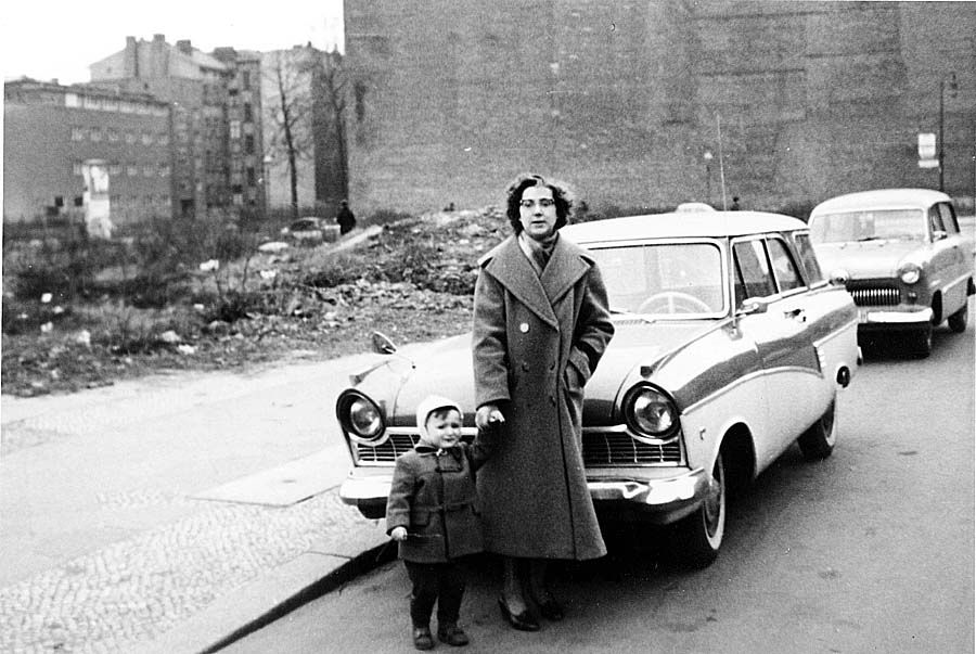 Frau und Kind zeigen den neuen Taunus 17m P2 Kombi "Barocktaunus"