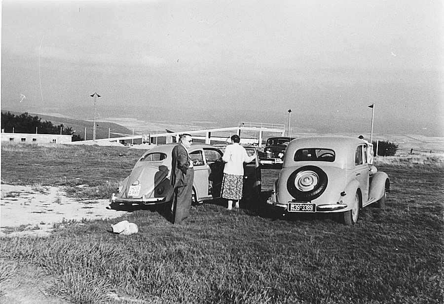 Am Aussichtspunkt trifft der alte Käfer auf einen Mercedes-Benz und einen Opel Kapitän