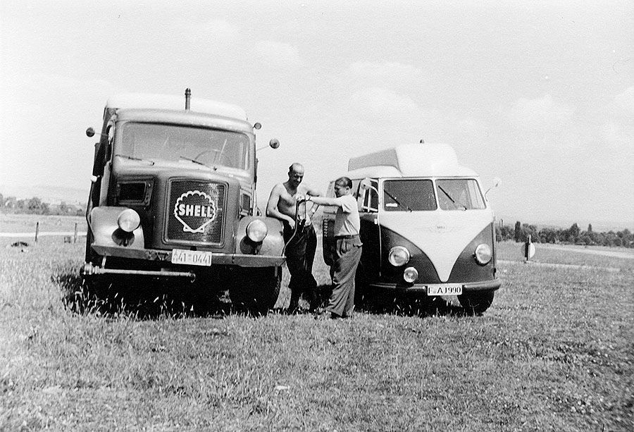 Die für den Flughafen benötigten Fahrzeuge sind beide luftgekühlt. Der Shell-LKW ist ein Magirus A 3500 und