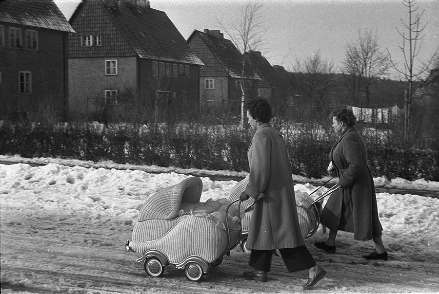 Die Kinderwagen besaßen 1955 verchromte Stoßstangen und Radhäuser.
