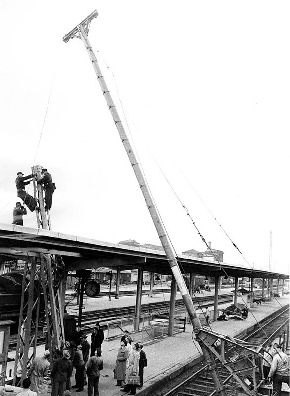 Montagearbeiten bei der Elektrifizierung Nürnberg - Würzburg 1953