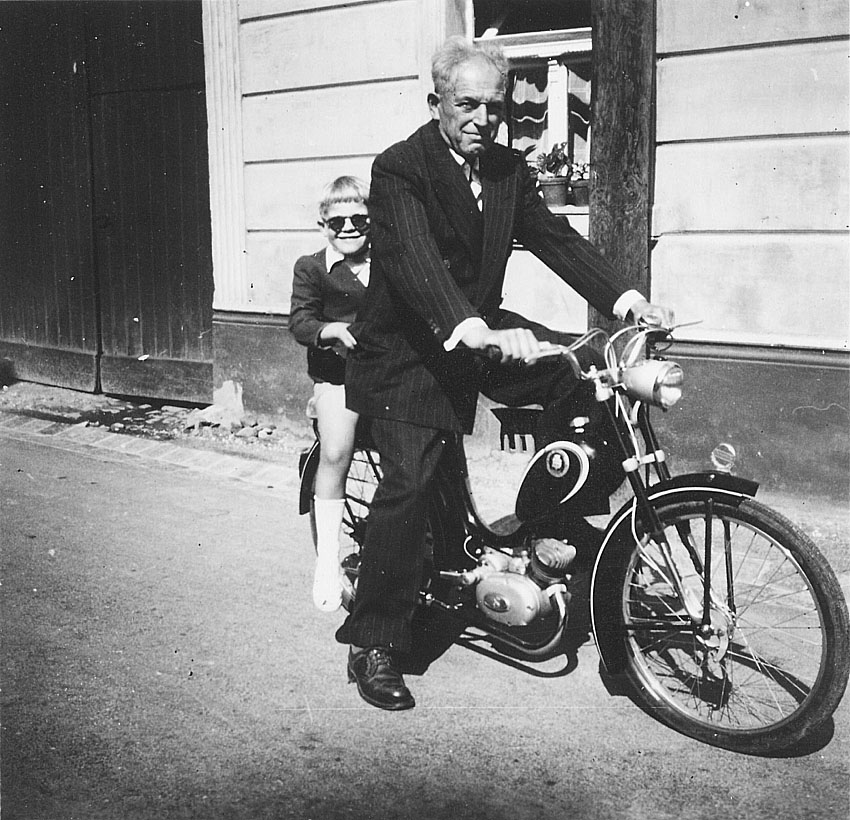Opa und Enkel erkunden mit dem neuen Bismarck Moped das Dorf.