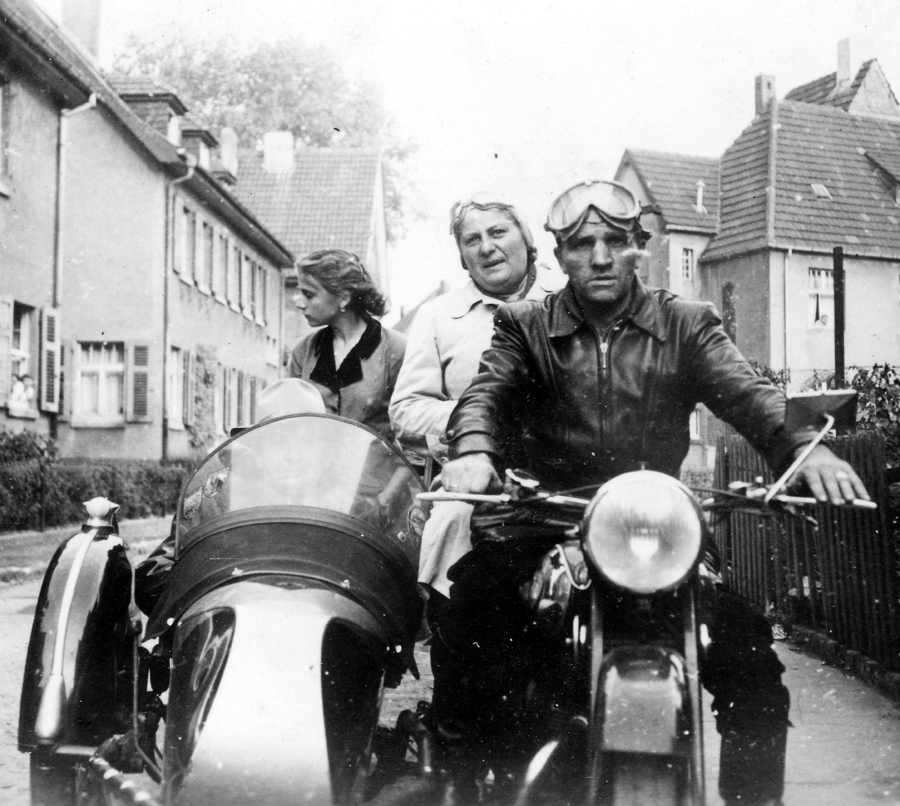 Die ganze Familie hat zur Probefahrt auf dem Gespann Platz genommen