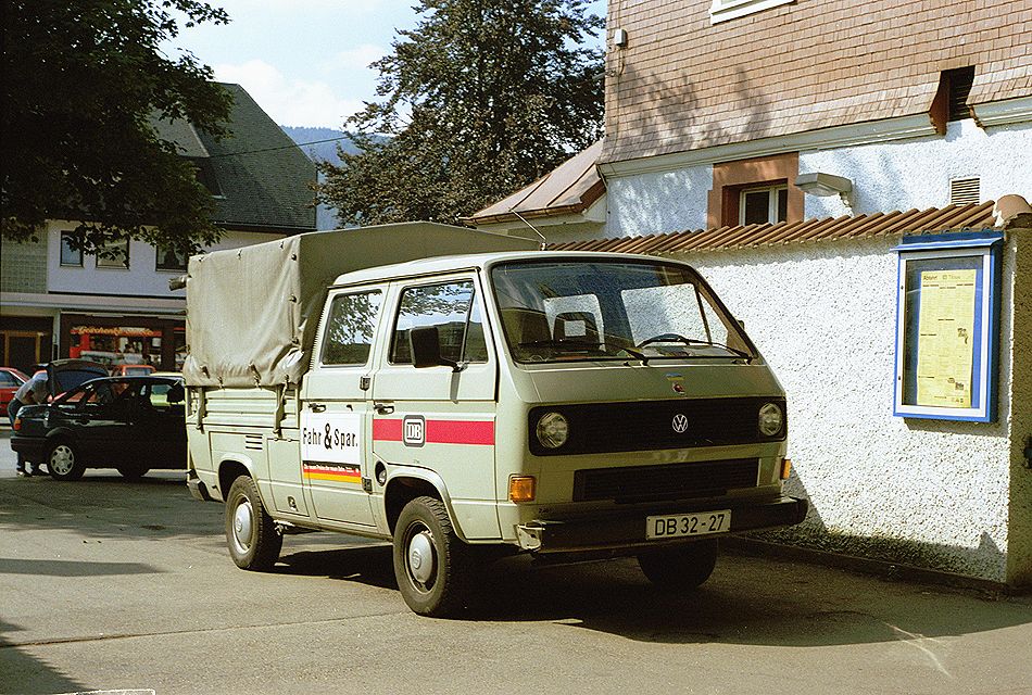 VW-Transporter DB32-27 Pritsche mit Doppelkabine (Doka) in den Achtzigern aufgenommen in Titisee.