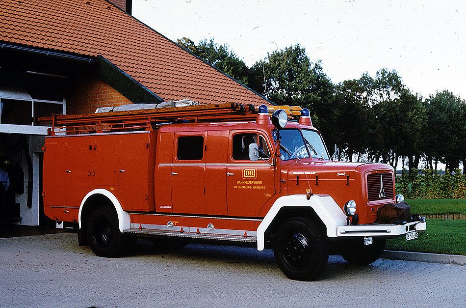 Magirus-Deutz Löschfahrzeug der Bahnfeuerwehr Hamburg-Harburg in den Achtzigern.