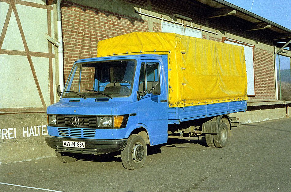 In den Achtzigern steht dieser Mercedes 407 D einer Privatfirma, die im Auftrag der Bundesbahn Stückgut zustellte, an der Laderampe in Bad Neuenahr.