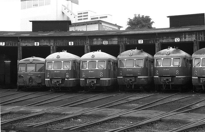 Parade von Akkumulator-Triebwagen im Bahnbetriebswerk Limburg am 02.10.1983