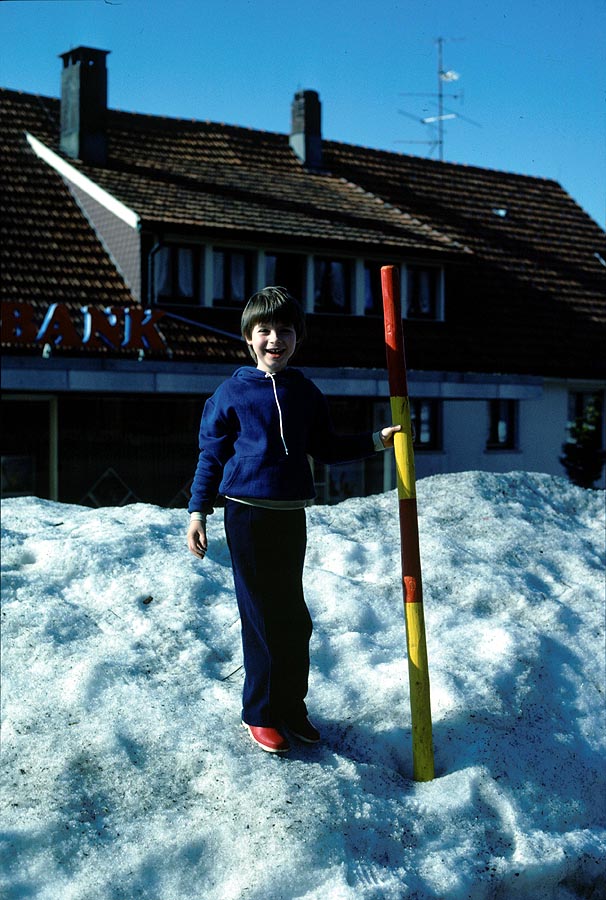 Thomas hat hinter dem Schneeberg die Volksbank entdeckt.