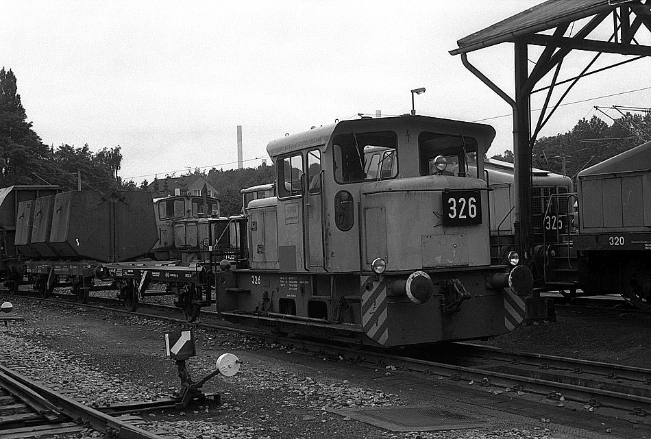 Lok 326 abgestellt mit anderen RAG-Loks in Gladbeck-West am 17.07.1984.