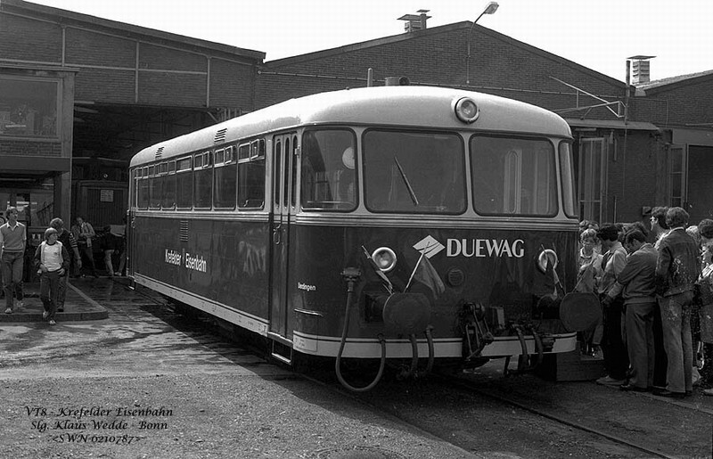 VT 8 (ex DB 798 554) der Krefelder Eisenbahn am 08.05.1983 in Krefeld-Nord.