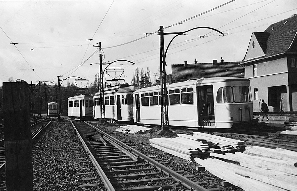 Zug 1 und 14 mit Beiwagen fahren am 18.10.1959 ins Depot