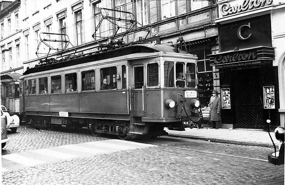 Zug 14 mit Beiwagen 101 durchfährt am 06.11.1957 die Sterntorbrücke