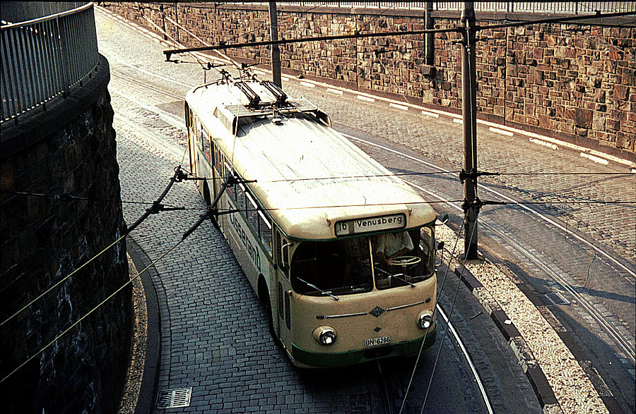 O-Bus 126 unterquert im September 1969 die Bundesbahnstrecke am Hauptbahnhof