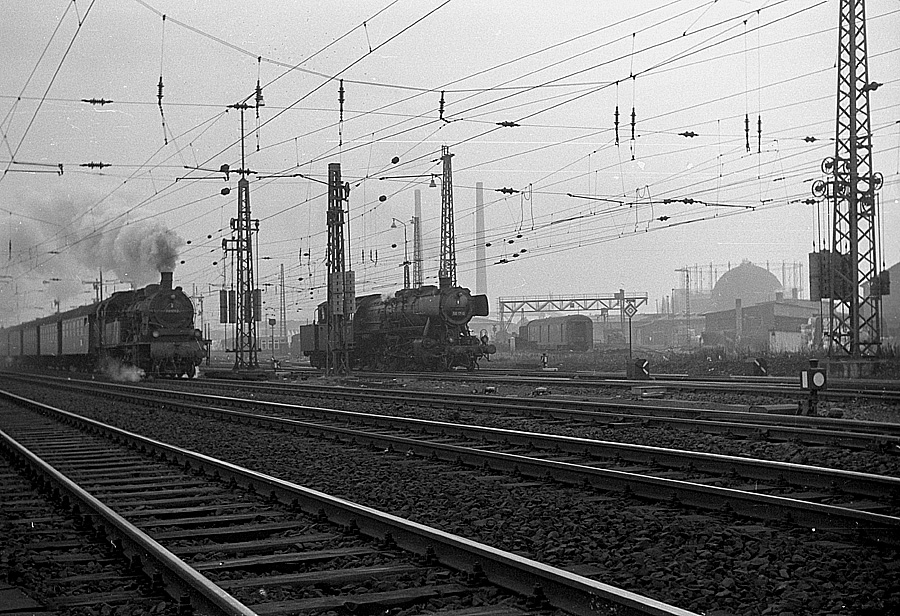 zur Rückfahrt nach Köln-Eifeltor bereit. Derweil überholt sie eine 78er mit einem Personenzug