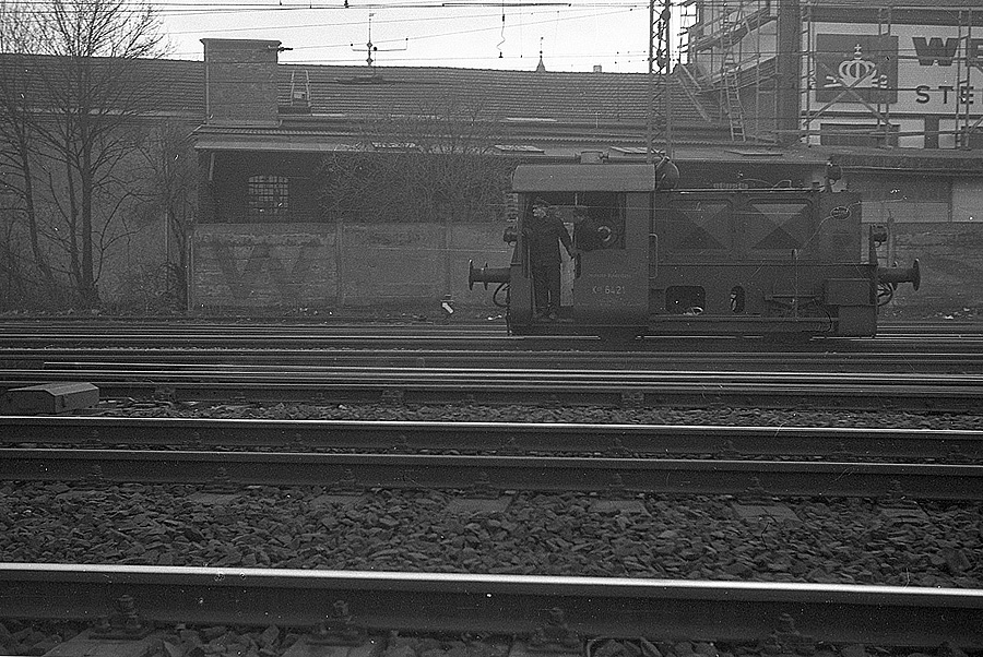 Im Januar 1965 ist die Hauslok Köf 6421 mit Rangierarbeiten im Bonner Gbf beschäftigt.