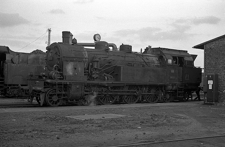 78 021 (Bw Köln-Eifeltor / zuvor Bw Euskirchen) am 10.03.1967 nach der Wasseraufnahme.