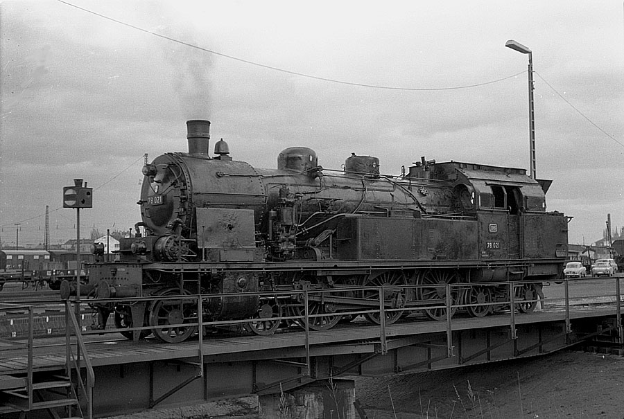 78 021 (Bw Köln-Eifeltor / zuvor Bw Euskirchen) steht am 10.03.1967 auf der Drehscheibe ehemaligen Bw Bonn.