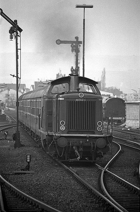 Am 04.03.1978 bringt Lokführer E. den Personenzug mit 212 044 nach Remagen.