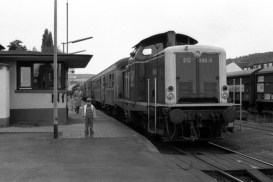 212 090 bringt am 08.09.1985 um 14.30 h den Zug nach Remagen mit meinem Sohn Thomas.