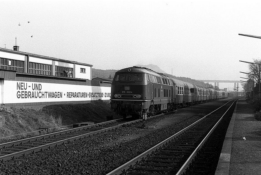 215 032 mit Sonderzug durchfährt am 26.10.1985 den Bf Bad Neuenahr.