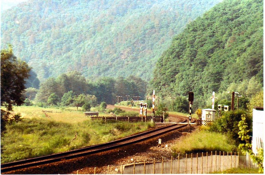 Das Bild zeigt den im Jahre 1974 eingerichteten Bahnübergang in Liers.