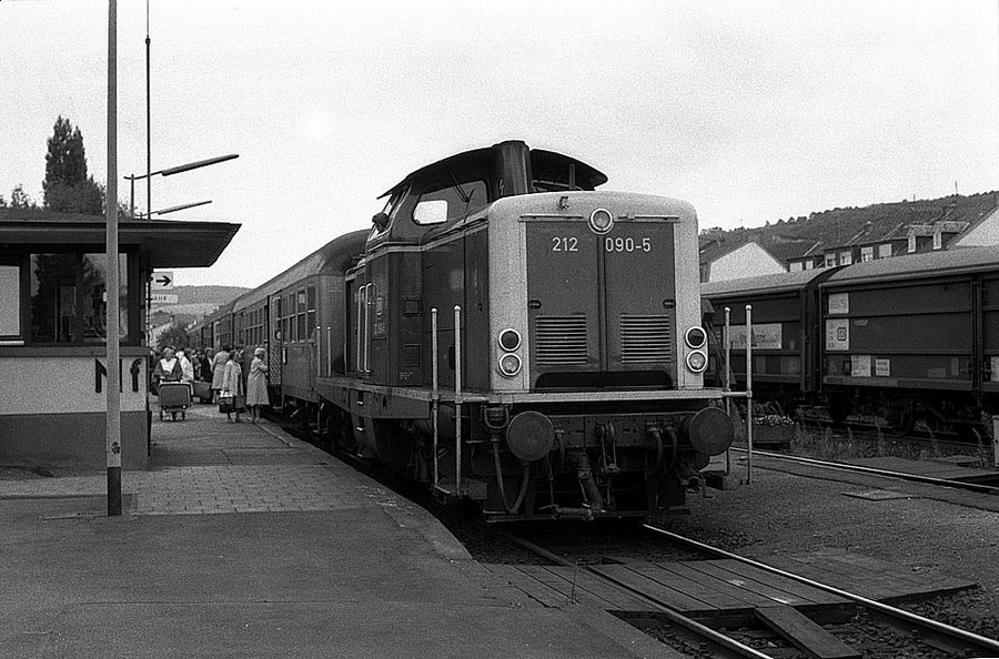 212 090 bringt am 08.09.1985 um 14.30 h den Zug nach Remagen.
