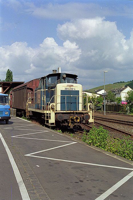 Ansichten von 365 210, die am 09.06.1995 im Neuenahrer Ladegleis rangiert.