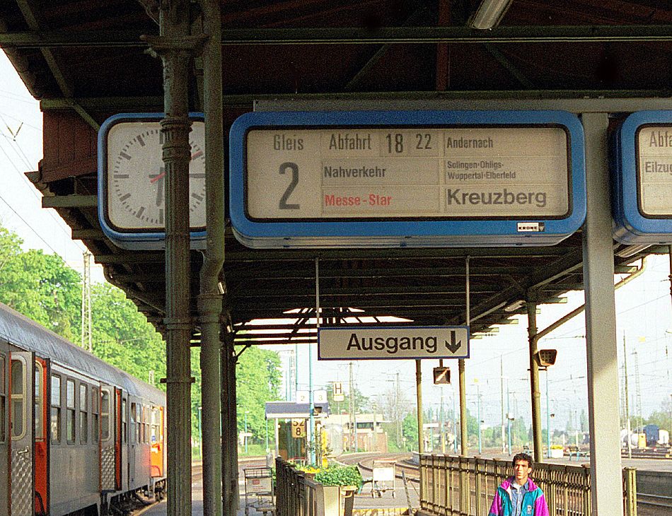 Diese kuriose Zugzielanzeige erscheint am 06.05.1992 an Gleis 2: