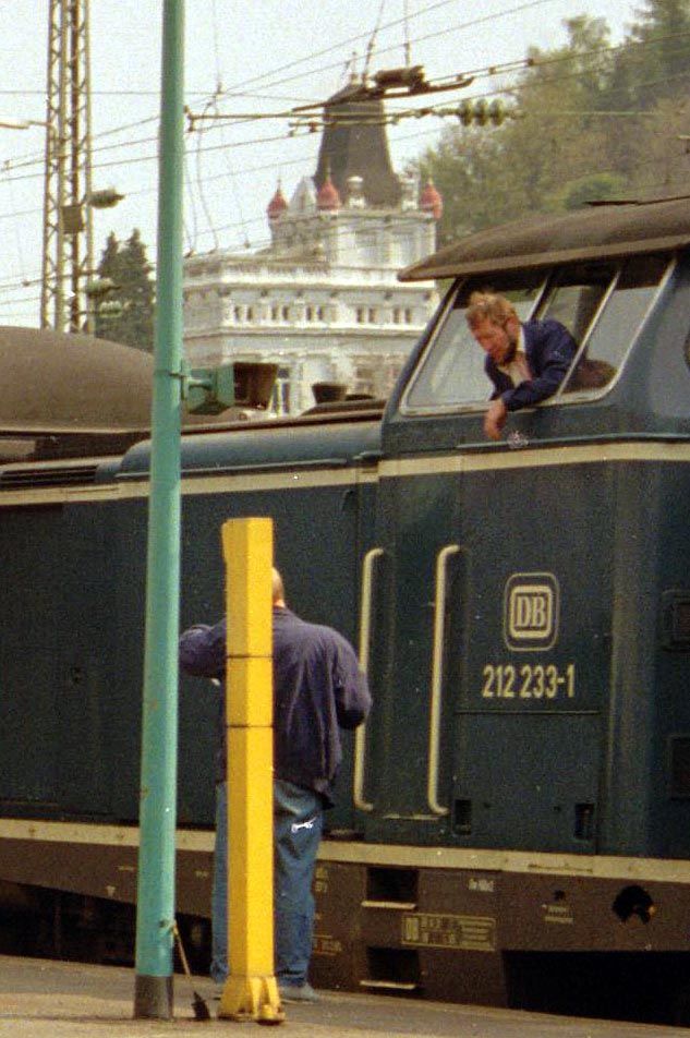 Lokführere E. stimmt sich am 26.04.1991 mit seinem Kollegen ab.