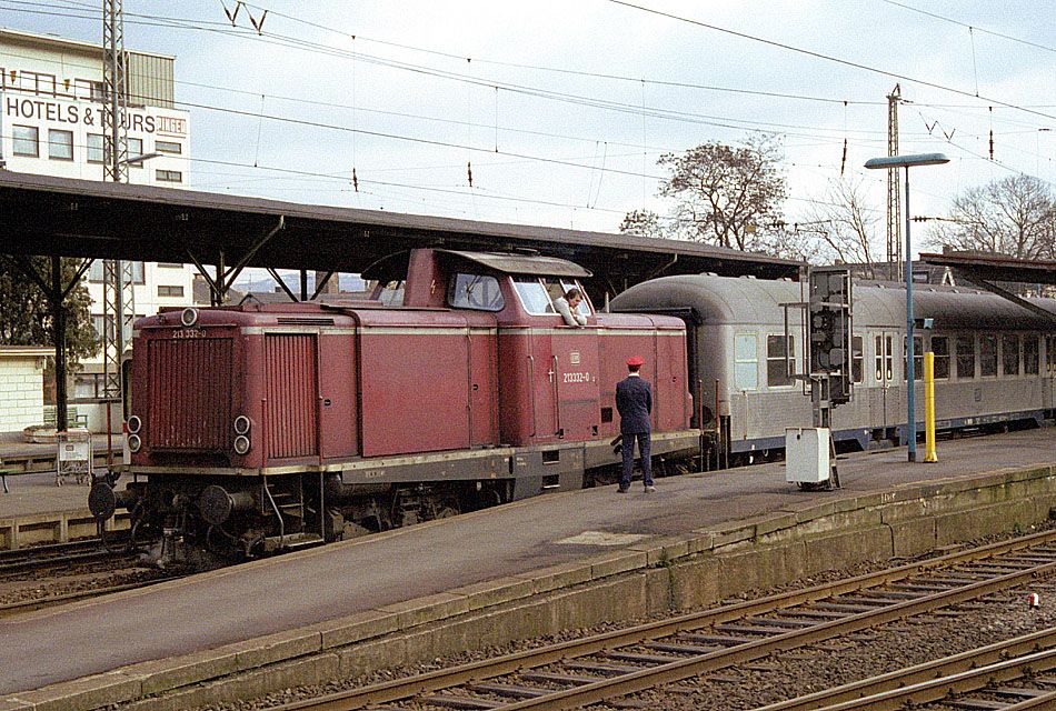 Der Aufsichtsbeamte unterhält sich mit dem Lokführer von 213 332.