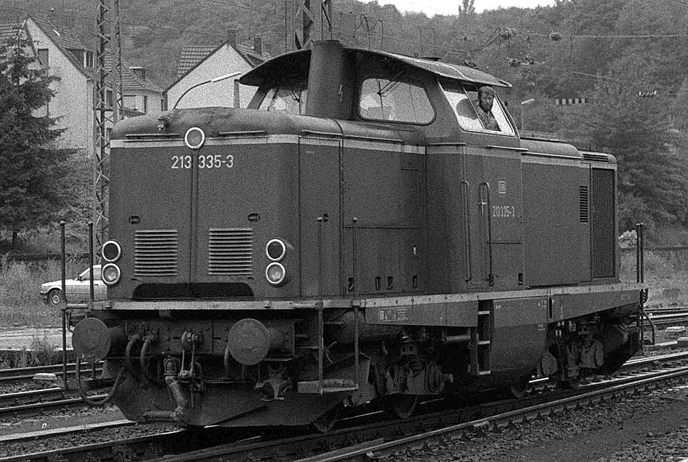 Lokführer E. setzt am 15.07.1988 seine 213 335 an den Zug der Ahrtalbahn.