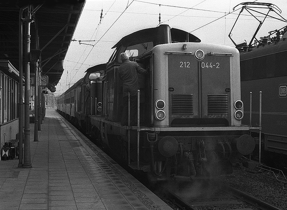 Die Lokführer von 212 044 und 212 090 am 08.11.1982 bei der Inbetriebnahme der Heizungen.