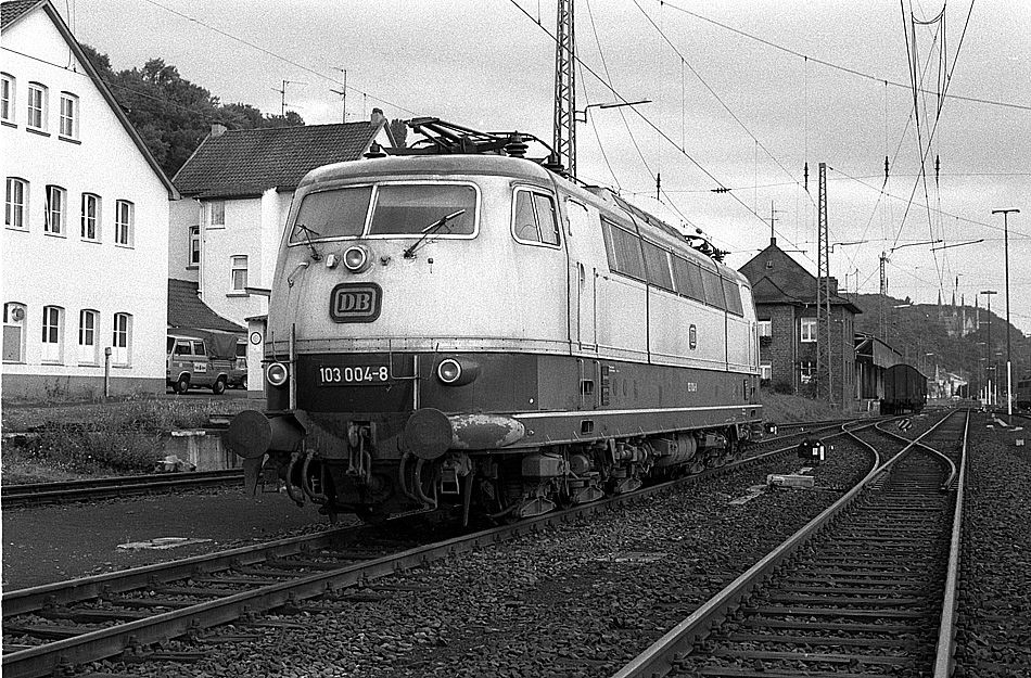 103 004 ist eine der vier Vorsierienloks der Baureihe E03, die z.B. über nur ein Lüfterband verfügt.