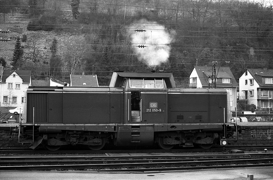 Ahrtalbahn-Stammlok 212 050 lässt am 25.12.1979 den Motor warm laufen.