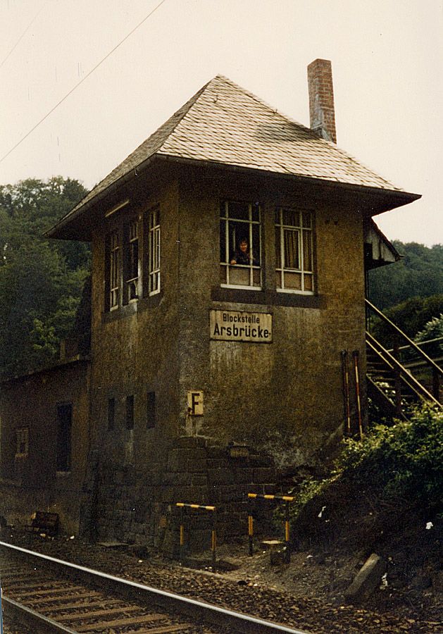 Am Fenster der Blockstelle Arsbrücke blickt 1961 der Kollege Horst K. aus dem Fenster.