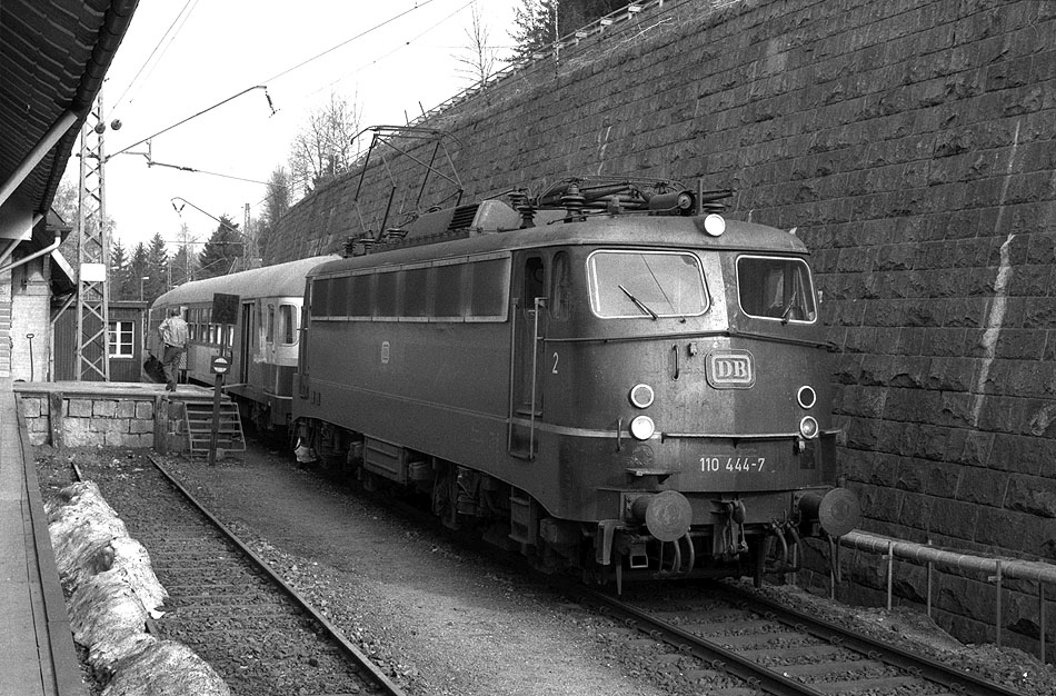 Am 26.04.1982 hat 110 444 vom Bw Dortmund Bbf den E2708 nach Seebrugg gebracht.