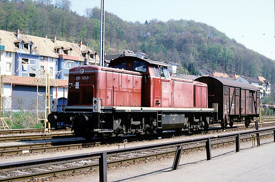 290 180 stellt am 24.04.1984 einen neuen Güterzug zusammen.