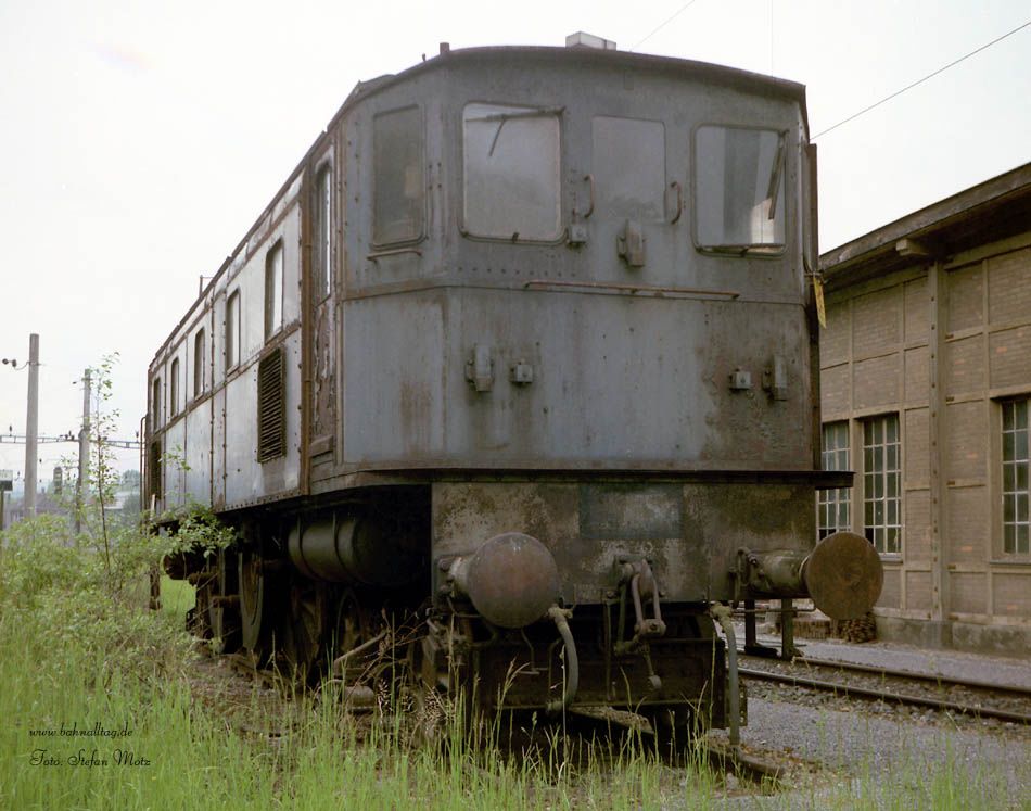 In der Nähe des Lokschuppens stand auch noch die alte Stangenlok Ae 3/6 II 10416 für Heizzwecke (Foto: 30.5.1984):