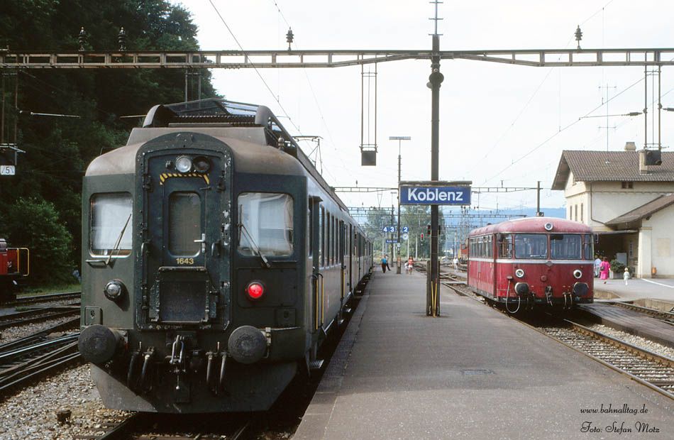 Schweizer Planzug BDe 4/4 1643 und 798 713. Der Triebwagen wurde in den Jahren 1952 bis 1955 gebaut. BDe 4/4 1643 erlebte 1997 noch eine zweite Karriere