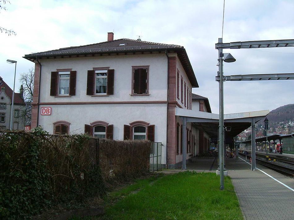 Gleisseite des Bahnhofs Waldshut am 25.03.2007 mit Schlussmast der Oberleitung.