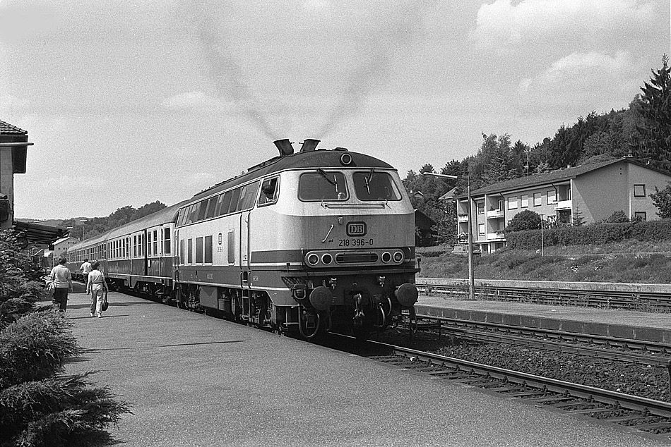 218 396 produziert am 25.07.1989 mit N4221 nach Singen eine mächtige Abgasfahne.