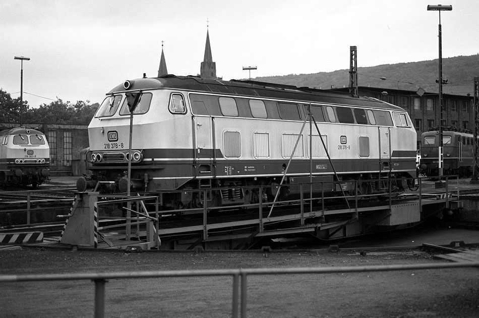 218 378 vom Bw Kaiserslautern am 25.10.1980 auf der Drehscheibe im Bw Bingerbrück