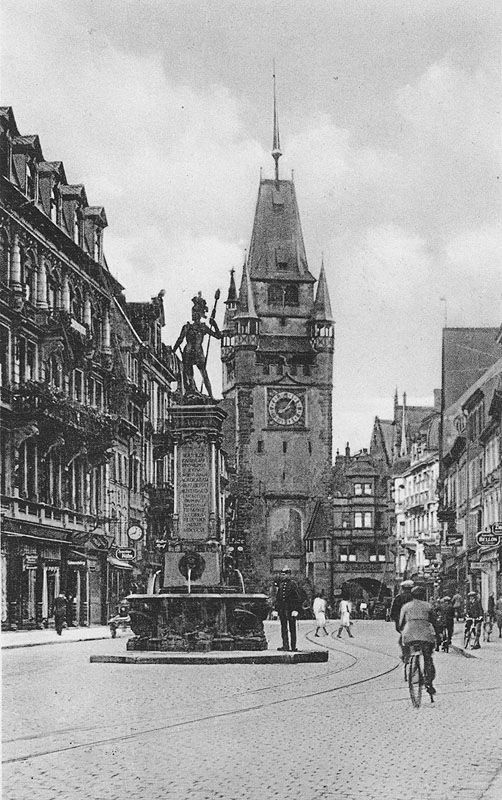 In Freiburg wacht der Schutzmann über die Ordnungsmäßigkeit des Verkehrs.
