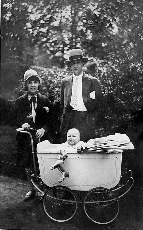 In welchem Verwandtschaftsverhältnis stehen die abgebildeten Personen zueinander ? Auch dieses Baby hält einen Stoffhund der unbekannten Hunderasse in der Hand.