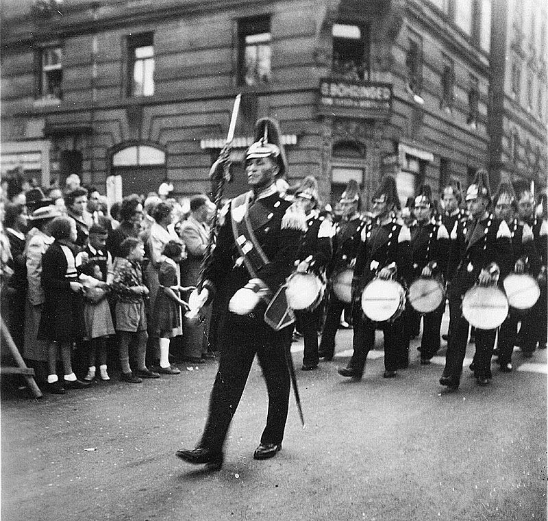 Zu Karneval marschiert dieses Musikcorps im Rosenmontagszug mit.